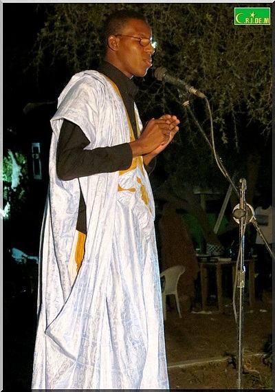 Ce soir-là , c’est toute la diversité mauritanienne qui a été représentée à travers la poèsie (hassanya, arabe classique, poular, français, soninké, wolof) pour clôturer les Traversées Mauritanides. Pendant plus de trois quarts d’heure, Djibril Zakaria Sall, Diakité Seck, Nadjirou Hamet Sy, Maro Diagana, Sidi Emjad et Maodo Sarr vont se succéder sur la scène.