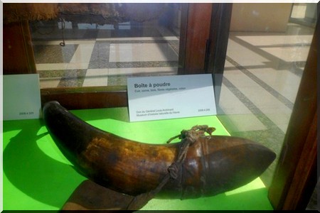 On retrouve alors un boubou de guerrier tué à Koundian, une espèce de corne qui sert de boite à poudre, un fusil ; un grand tambour à trois pieds qui a raisonné sans interruption deux jours durant tout au long de la bataille d’Ouosseboughou, le 25 et 26 avril 1890, retrouvé dans la citadelle et offert à Archinard par se.s alliés Bamanas après la chute de Seghou, renseigne le musée du Havre où sont conservées ces archives d’El Hadj Omar.