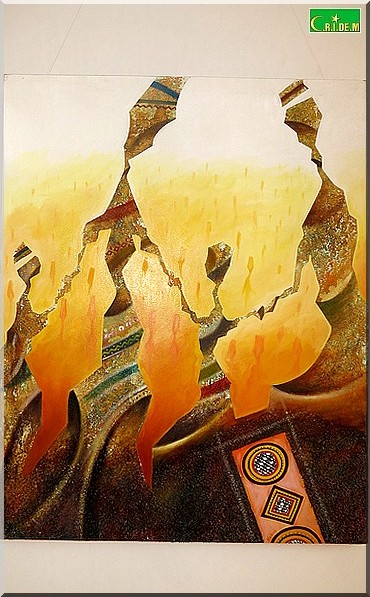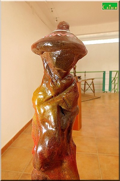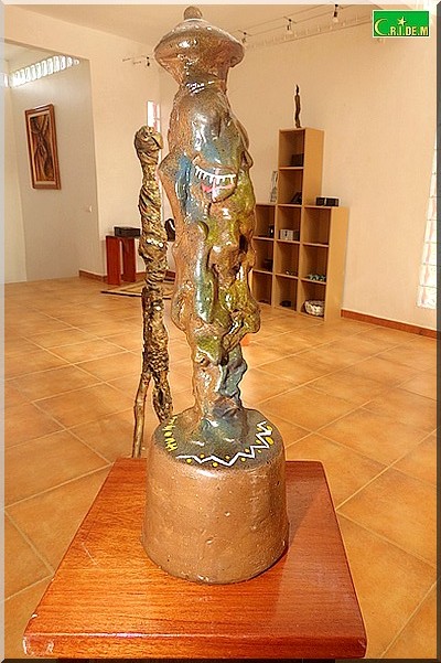 L’exposition s’ouvre sur une sculpture aux formes déliées et secrètes. Il s’agit de "Jeune fille" sculptée en deux versions. "On ne sait pas si c’est une mauresque, une halpoular, une Wolof ou une Soninké", note Mokhis qui explique que l’essentiel n’est pas de regarder mais de sentir fondre les identités et les différences dans le moule de l’unicité.