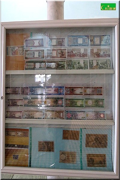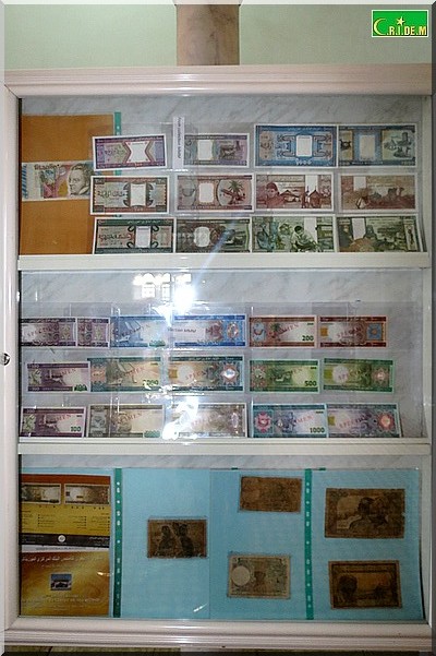 Cette exposition réunit une précieuse collection de timbres, de monnaies, de billets de banque. On y découvrira entre autres les premiers billets de banque de Mauritanie de 1000 UM et 200 UM, datant de 1973, le premier timbre de poste de 90F.