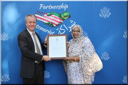 US Embassy - Le 8 décembre, l’Ambassadeur Larry André a organisé un déjeuner à sa résidence en l'honneur de Mme Zeynabou Mint Taleb Moussa, Présidente de l’Association Mauritanienne pour la Santé de la Mère et de l'Enfant (AMSME), qui vient de recevoir le prix "Femme de Courage en Mauritanie pour l’année 2017", et qui est candidate au prix international de Femme de Courage du Département d'État.