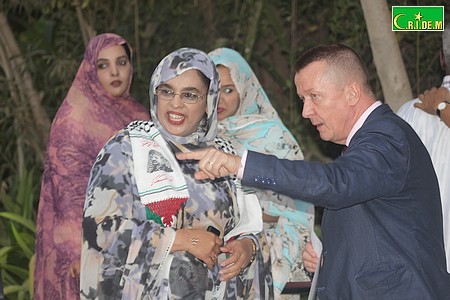 Présidente de l'ONG BiodiverCités et Directrice du Village de la Biodiversité de Nouakchott, Maimouna Mint Saleck "œuvre au rapprochement des cultures mauritanienne et française", a salué M. Meyer, avant de relever ses activités de réalisatrice, avec les deux documentaires : La palmeraie de Nouakchott, le poumon d’une ville qui étouffe et Zazou, hors-la-loi.