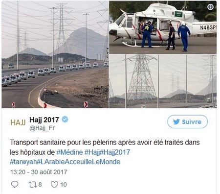 Côté installations sanitaires, plus de 2 468 employés du Croissant-Rouge saoudien sont mobilisés, ainsi que 500 volontaires et 326 ambulances. Les équipes de secours disposent aussi de 113 centres ambulanciers et de huit hélicoptères.