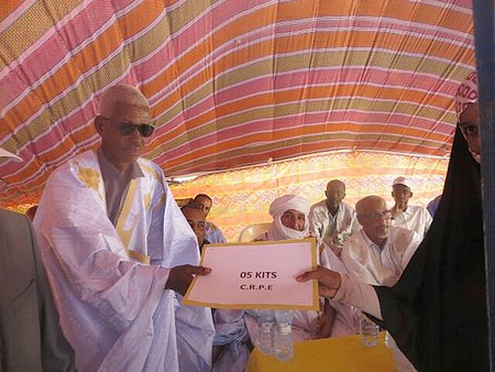 Après échange de discours entre le Dircab, le maire adjoint de Tidjikja et le Premier responsable de Moundi, les officiels ont procédé à la distribution des Kits hygiènes aux bénéficiaires (des coopératives féminine, les handicapés et les associations artisanales).