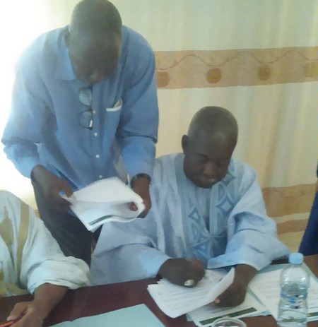 CCME - Le mardi, 15 mai 2018, a eu lieu à Rosso, région du Trarza, la signature d’un mémorandum entre le Collectif des Cadres Mauritaniens Expatriés (CCME) et la Mairie de Rosso, l’Association des parents d’élèves, l’Inspection Départementale de l’Eduction Nationale (IDEN), la Direction de l’Ecole I de Rosso, en présence du Conseiller du Wali, du Hakem de Rosso, des membres de la délégation du CCME.