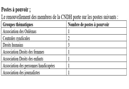 Candidatures aux postes de membres de la CNDH