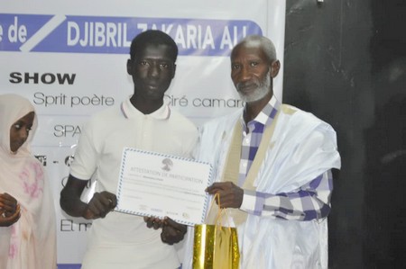 13 élèves issus des écoles Noura, Cesteca, collège de jeunes filles, Ansar, El Mawaheb, collège Ksar et Mocktar Kelly ont fait des prestations qui ont enchanté le public en présence du héro du jour Djibril Zakaria Sall entouré de sa famille et de ses invités, des personnalités de la littérature mauritanienne d'expression française.