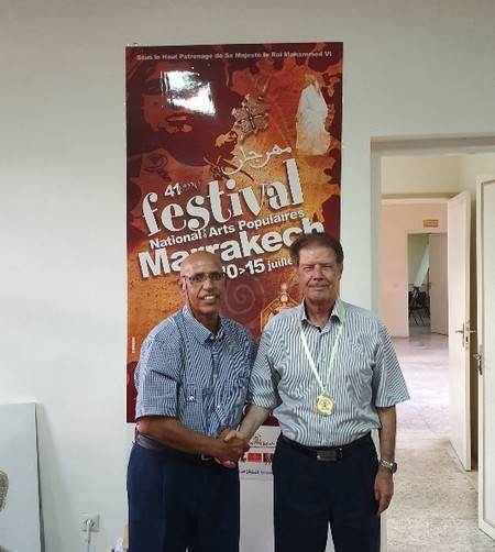Son Excellence le Pr KNIDIRI est le Président du marathon International de Marrakech et aussi le Président de l’Association du Grand Atlas. Ayant appris par ses collaborateurs que les stagiaires de notre marathon sont intéressés par la Culture et les Techniques des festivals, son Excellence le Pr KNIDIRI m’invita avec ma fille et mon épouse à la 50 éme Edition du Festival des Arts Populaires (pour plus de détails voir SVP la note adressée au Wali de Dakhlete Nouadhibou ci-jointe pour information). J’ai profité de ce séjour pour apprendre et voir comment les choses se passent. J’en ai parlé à mon retour au staff de notre marathon et ils approuvent de tenter l'aventure.