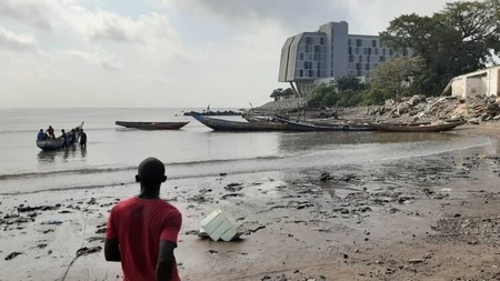 La Commission ne devrait pas hésiter à reconnaître que la pêche artisanale est le secteur le plus vulnérable de l'« économie bleue ». Sur la photo, un hôtel cinq étoiles près d'un site de débarquement artisanal à Conakry, par Mamadou Aliou Diallo.