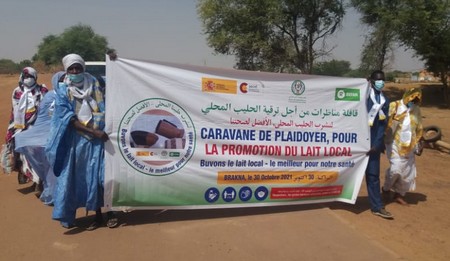 Terroir Journal - Sous le slogan "boire le lait local égal soutenir les Producteurs", imprimé sur des agendas et des bandeaux noués autour des coups, le collège des consommateurs du lait engagé pour la promotion de "mon lait local" appuyé par le réseau des organisations pour la sécurité alimentaire (ROSA) en partenariat avec la coopération espagnole et OXFAM a organisé une caravane le 04 Novembre 2021.