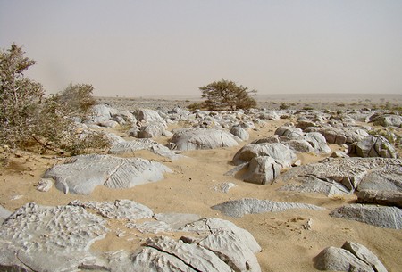 Le reg, paysage désolé de cailloux et de roches érodées © SGrandadam