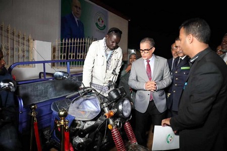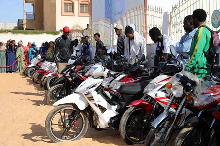 Aujourd’hui ici à Sebkha, dont la jeunesse est connue pour l’intérêt qu’elle porte aux sports et aux loisirs, nous offrons aux jeunes ce complexe composé d’une boutique communautaire, d’une salle de divertissement et d’un terrain de Foot, 50 motos et 5 tricycles à la commune ; 64 emplois créés dans cette commune ce soir.