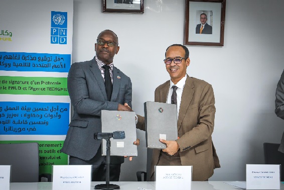 Le protocole d'accord a été signé par le Directeur Général de TECHGHIL Mr Abdel Fettah ABDEL FETTAH, et le Représentant résident du PNUD Mr Mansour Ndiaye.