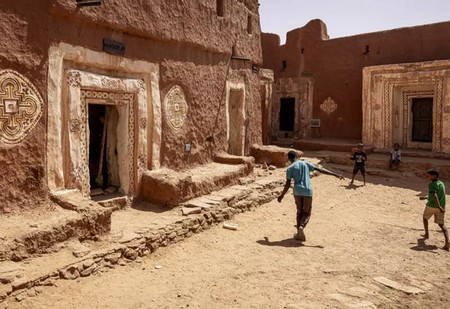 Dehors, l'air matinal du Sahara est déjà brûlant mais le bâtiment en banco conserve une certaine fraîcheur.