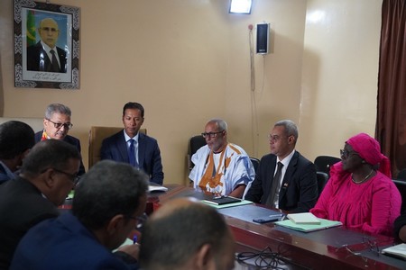 La délégation a pris part à une réunion de travail à la Wilaya, sous la présidence du Wali de Dakhlet Nouadhibou, M. Mahi Ould Hamed. Les échanges ont porté sur les projets de développement durable entamés par la société dans la région depuis le début des opérations, ainsi que sur les principaux défis des communautés entourant la mine de Tasiast.