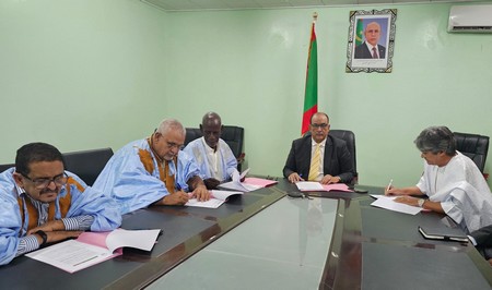 L’accord a été signé par le directeur général de la SONADER, M. Hamada Ould Didi Ould Sid’Ahmed, ainsi que par les présidents des trois conseils régionaux :