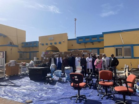 À cette occasion, un conteneur de matériel médical et de consommables, d’une valeur en nature estimée à 310 000 dollars américains, a été distribué au profit de l’hôpital régional de Zouérat ainsi que des centres de santé de Zouérat, F’derick et de Bir Moghrein. Cette dotation vise à soutenir les soins quotidiens et à renforcer les capacités de prise en charge des structures bénéficiaires, notamment dans des zones éloignées.